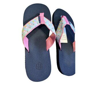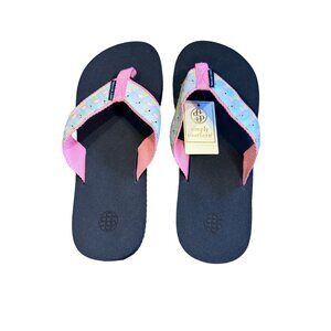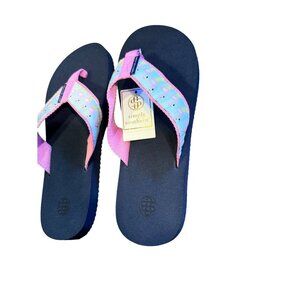 Simply Southern Flamingo Print Flip Flops Navy & Pink Thong Sandals Size S 5/6