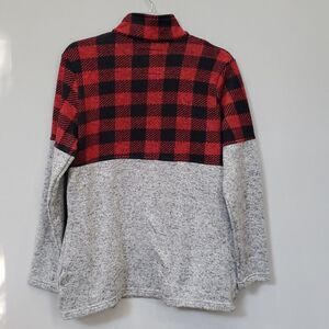 Simply Southern Fleece Womens sz L Buffalo Plaid Heather Gray 1/4 Zip Pullover