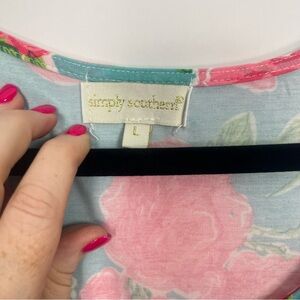 Simply Southern Floral Print Pink Blue Shift Dress Sz Large