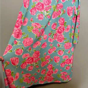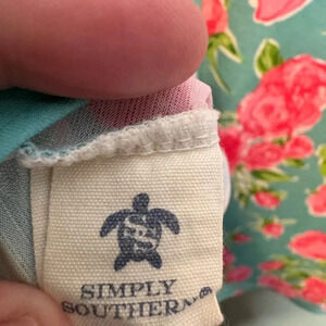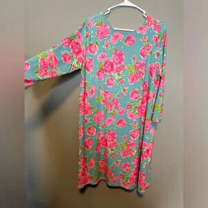 Simply Southern Floral Rose Pattern Blue‎ Pink Pockets Dress Women’s Size Large