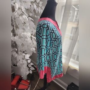 Simply Southern Geometric Patterned Women's Top - Pink and Blue Size Medium