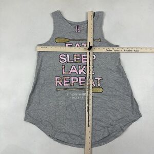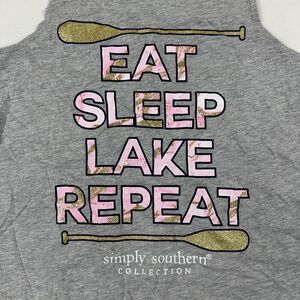Simply Southern Gray Tank Top "Eat Sleep Lake Repeat" Graphic Tee Glitter Sz M