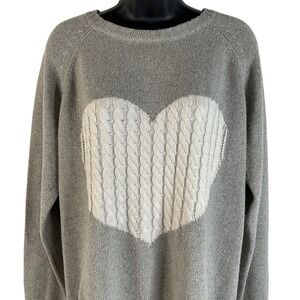 Simply Southern Gray & White Heart Cable Knit Pullover Sweater Women's Size XXL