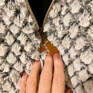 Simply Southern Gray and White Fuzzy Sherpa 3/4 Zip Pullover Size S