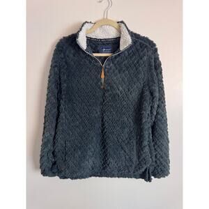 Simply Southern Grey Faux Fur Sherpa Soft Quarter Zip Sweater Small