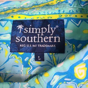 Simply Southern Hawaiian Shirt Mens Large Light Blue Polo Stretch Polyester