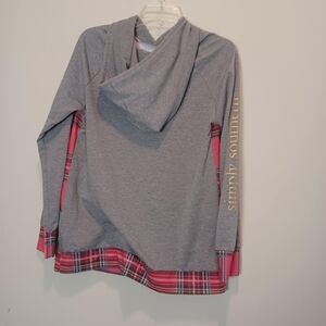 Simply Southern Hoodie Medium Red Plaid And Grey Top Sweat Shirt Comfort