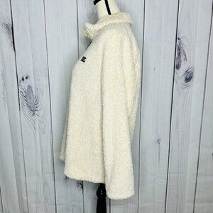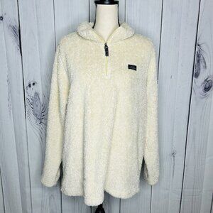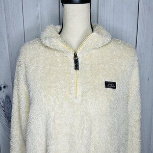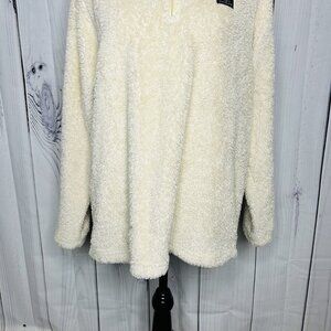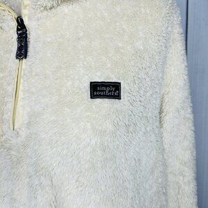 Simply Southern Ivory Sherpa Sz L Pullover 1/4 Zip Cozycore Soft Fleece Logo, 100% polyester. This pullover is in great pre-owned condition. The only issue is one small hole near the hem, see pic.