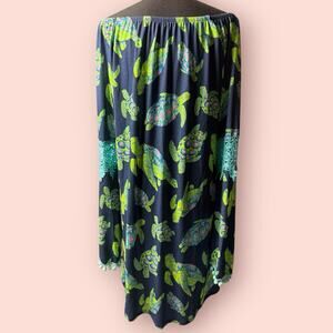 Simply Southern Knit Dress Womens Navy Blue Pink Turtles Medium Long Bell Sleeve