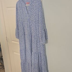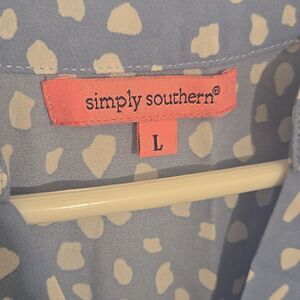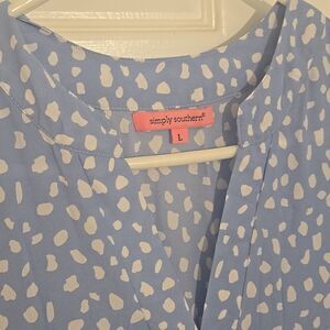 Chic blouse with playful white patterns. Perfect for any occasion.