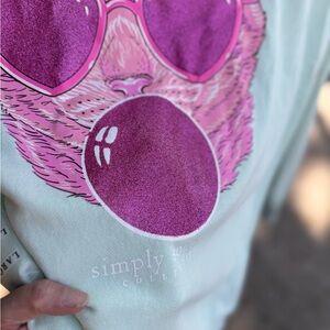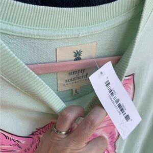 Light green sweatshirt with a playful pink cat design. Simply Southern branding.