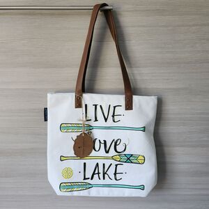 SIMPLY SOUTHERN Live Love Lake Canvas Tote Shop Bag Beach Vibes NWT NEW