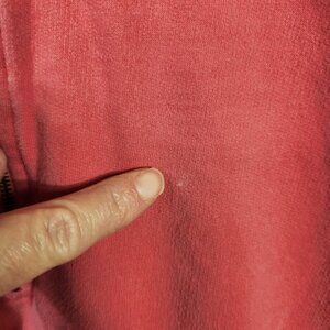 There is a very small white stain to the left of the zipper. PLEASE SEE PICS.