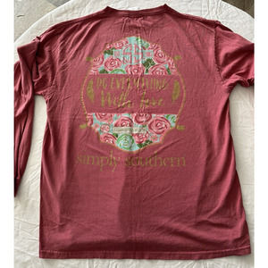Simply Southern Long Sleeve Deep Pink Long Sleeve Large T-Shirt, Graphic w/Roses