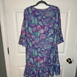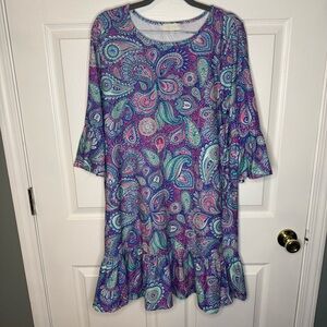 Simply Southern Long Sleeve Paisley Dress - Purple Pink and Teal Size Large GUC
