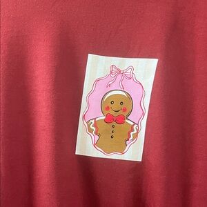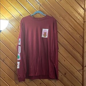 Maroon long sleeve tee with charming graphics on pocket and sleeves. Ideal for everyday comfort.