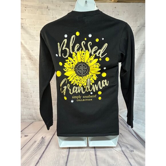 Simply Southern Medium Sunflower Blessed Grandma Long Sleeve T Shirt Black