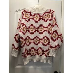 Simply Southern Men’s 1/4 Zip Cozy Knit Aztec Oversized Sweater Size L Beige Red