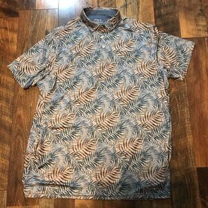 Simply Southern Mens Size 2XL Tropical vacation shirt camp button short sleeves- polyester spandex - blue beige