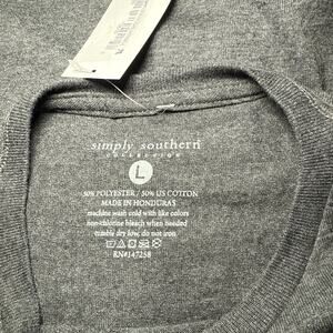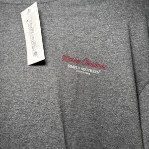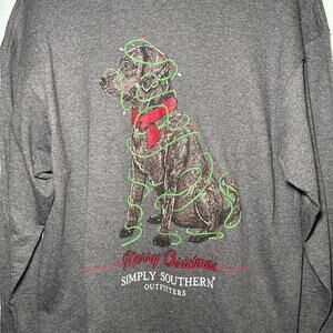 This Simply Southern Merry Black Lab Christmas T-shirt in size Large features a festive design perfect for the holiday season. Made from a comfortable cotton blend material, this machine washable shirt is ideal for both men and women. The long sleeves and regular fit make it a versatile and stylish addition to your Christmas wardrobe, showcasing your love for black labs and the holiday theme with its charming black lab character design.