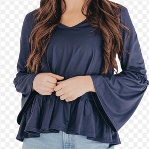💛 Simply Southern Navy Blue Long Sleeve Ruffle Top Size S