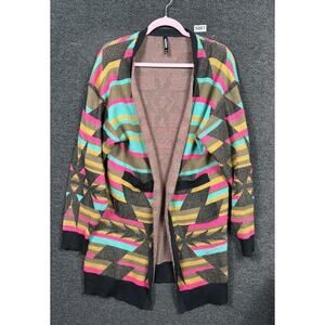 Simply Southern Open Front Cardigan Sweater Womens Size XL Fair Isle Print Multi