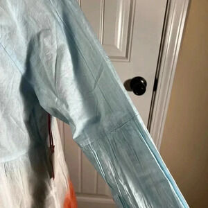 Cotton sheer long sleeve peasant dress, tassel tie front, 4 tiered, 3 color (white, blue and light orange) dress