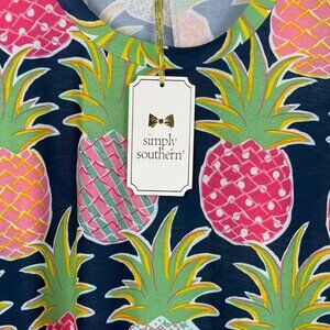 Simply Southern Pineapple Print 3/4-Sleeve Asymmetrical Top Tunic Size S. 95% polyester, 5% spandex. Brand new with tags.