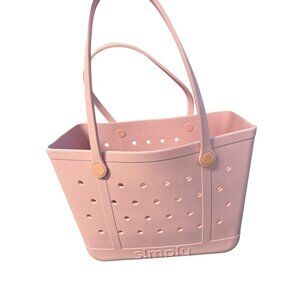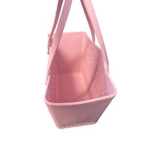 This lightweight tote bag offers practical perforations for ventilation and easy cleaning, complemented by durable double handles and a textured bottom.