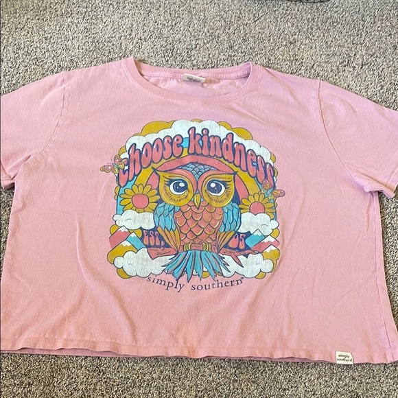 Simply Southern Pink Crop Top with Owl Design