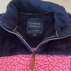 Simply Southern Pink Navy Blue Sherpa Pullover Sweatshirt Size Small