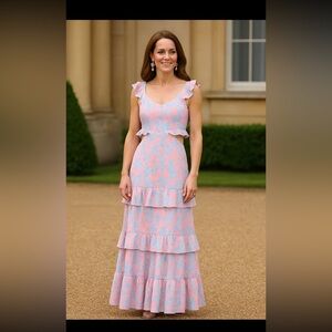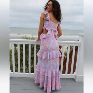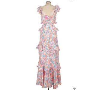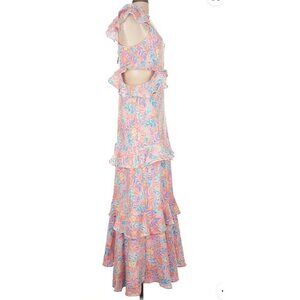Simply Southern Pink Pineapple Tropical Ruffle Cutout Maxi Dress Size L NWT