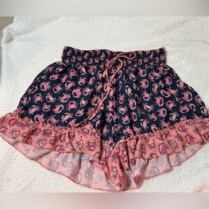 This Simply Southern shorts are for casual resort wear, featuring a playful pink hue with charming ruffles and a stylish tie front. The ruffled layers add a touch of fun and movement, making it an ideal choice for a relaxed yet chic look.