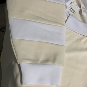 Stylish pink long sleeve shirt with white stripes. Features a classic collar and relaxed fit.