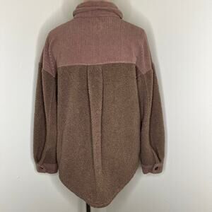 Simply Southern Shacket Large Womens Sherpa Jacket Brown Button Chenille Pockets