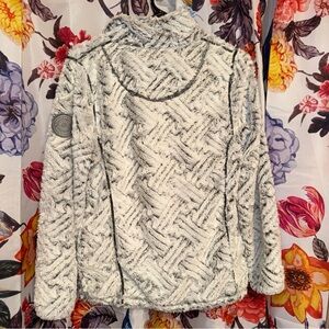 The Simply Southern Sherpa Pullover in Gray is a stylish and cozy sweatshirt perfect for women size small. This pullover features a chevron pattern, long sleeves, and a zip closure for easy wear. Made with faux fur and polyester, it is lined with polyester for added warmth and comfort. Ideal for casual, activewear, or travel occasions, this pullover also includes accents like a zipper and logo details. Machine washable, this pullover is a must-have for the winter, fall, or spring seasons, making it a versatile and fashionable addition to any wardrobe.