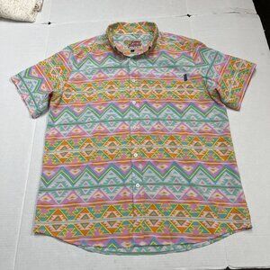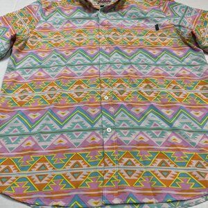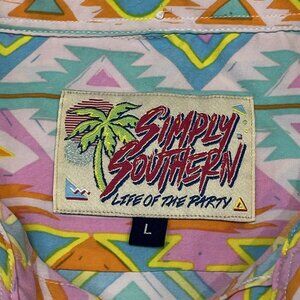 Simply Southern Shirt Mens L Pink Aztec Print Button Down Life of the Party