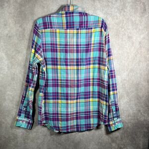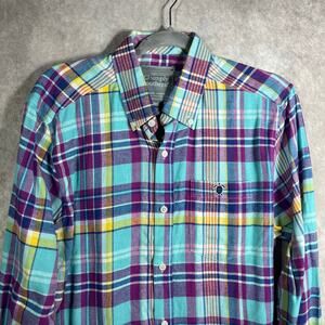 Simply Southern Shirt Mens Medium Blue Purple Plaid Button Down Casual Preppy