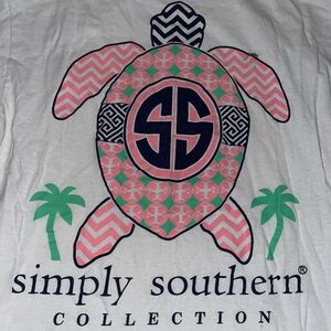 Simply Southern Shirt Womens M White Logo Turtles Collection Casual Graphic. Euc