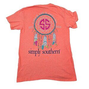 Simply Southern Shirt Womens Small Coral Dreamcatcher Feathers Catch Your Dreams