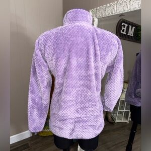 In like new condition. No issues. Size small. Has pockets. Snap button closure at the neck. Extremely soft.