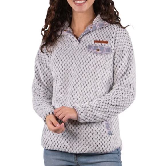Stay warm and cozy in this adorable Simply Southern Simply Soft Pullover for Women in Grey this season! This pullover features a super soft fleece, quarter snap construction, two side pockets, and pink plaid print accents. Perfect for bonfires to running errands, style this Simply Southern pullover with denim or leggings to complete the look.