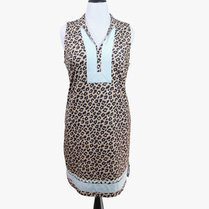 Simply Southern Size L Tunic Dress Knit Collared Prep Leopard Print