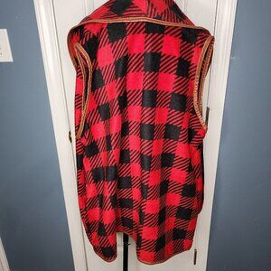 Simply Southern Sleeveless Fleece Cardigan Womens L Open Red Check Plaid Vest