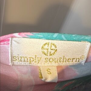 Simply Southern Small Pink Green Teal Relaxed Stretch Midi Palm Tree Print Midi. Embrace a laid-back vibe with this Simply Southern midi dress, showcasing a relaxed fit and stylish cut-out accents. The pink and green color palette adds a lively touch, perfect for casual days. Crafted for comfort, this short-sleeve midi is a versatile addition to any wardrobe.