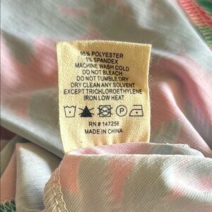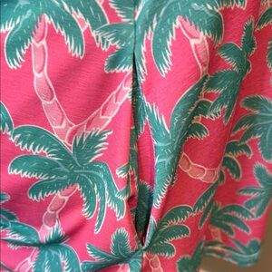 Simply Southern Small Pink Green Teal Relaxed Stretch Midi Palm Tree Print Midi