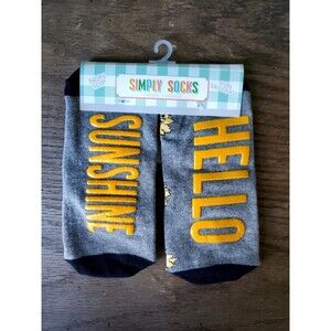 Simply Southern Socks Hello Sunshine Gray Yellow Non Slip Unisex W 4-10.5 M 5-10