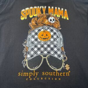 Simply Southern Spooky Mama 100% Cotton 2XL. Preowned and in excellent condition. Tshirt is perfect for Mama's in October. Matching youth large is also listed for sale. Please see all photos. Approx measurements in pictures.