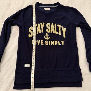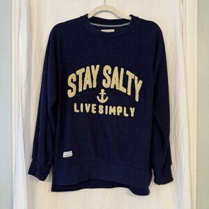 Simply Southern Stay Salty Navy Nautical Beach Fisherman Pullover Sweatshirt Sm