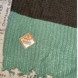 Simply Southern Striped Green and Brown v neck Cozy knit Sweater sz S